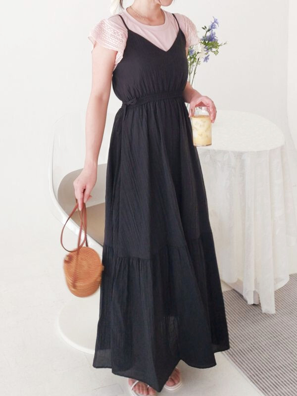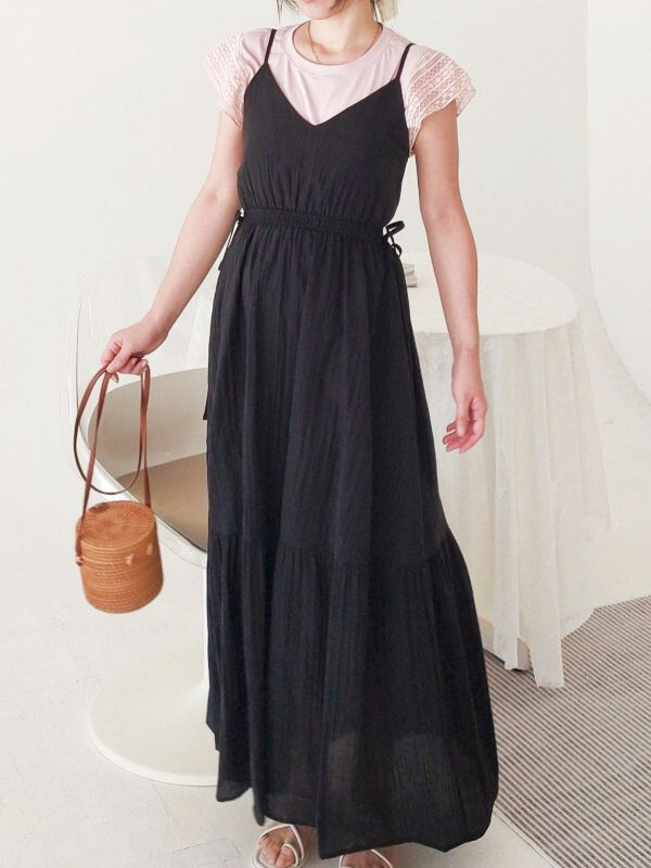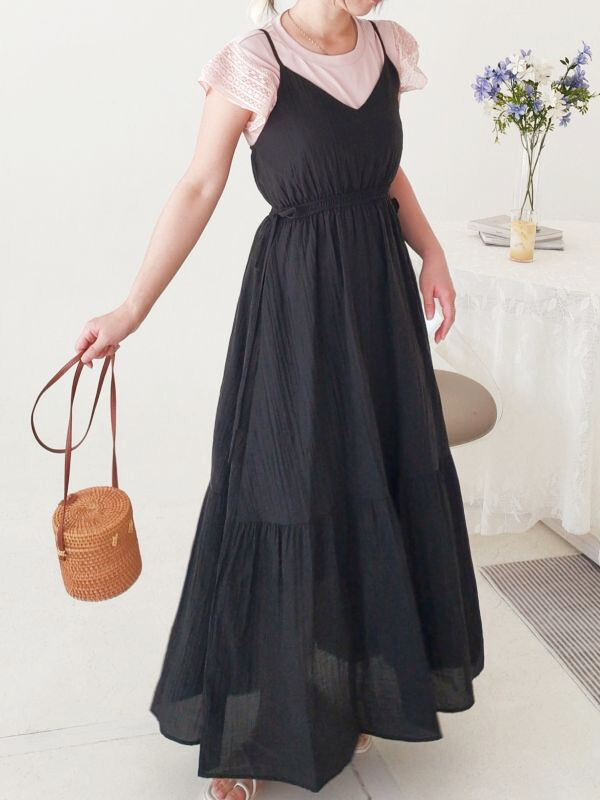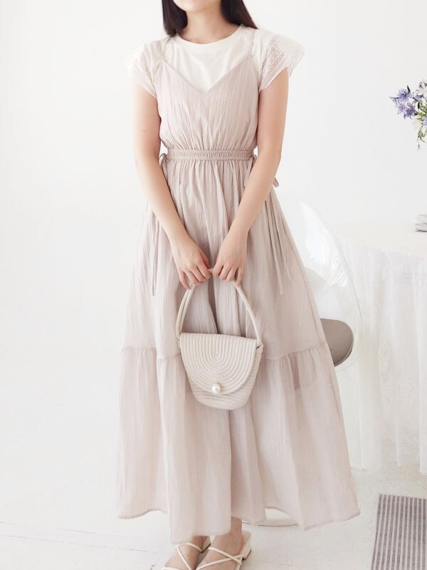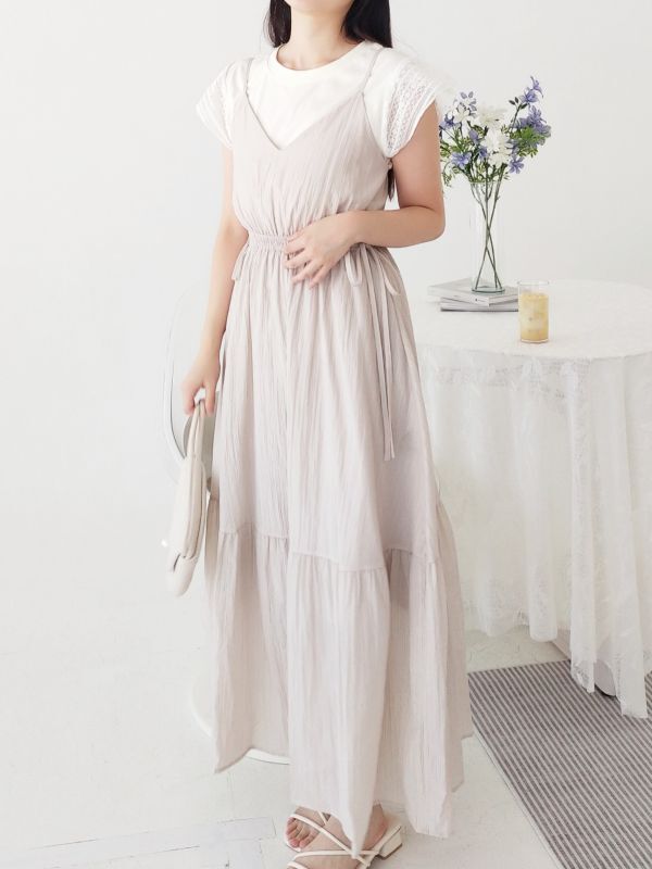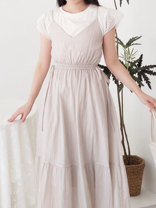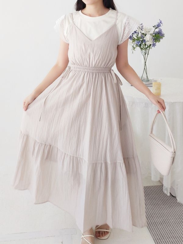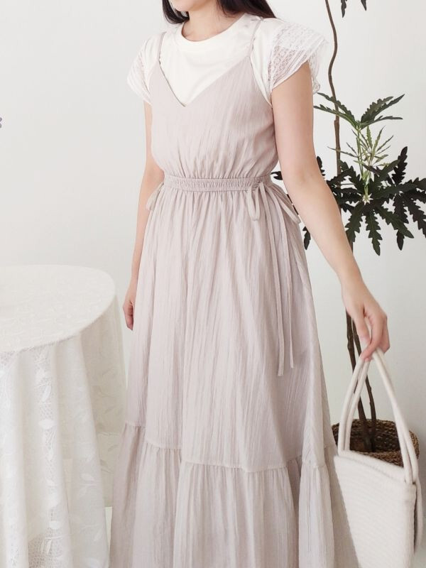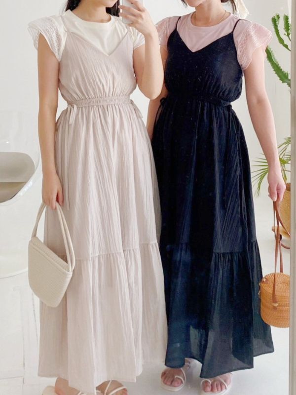 袖蕾絲兩件式縮腰洋裝/兩色