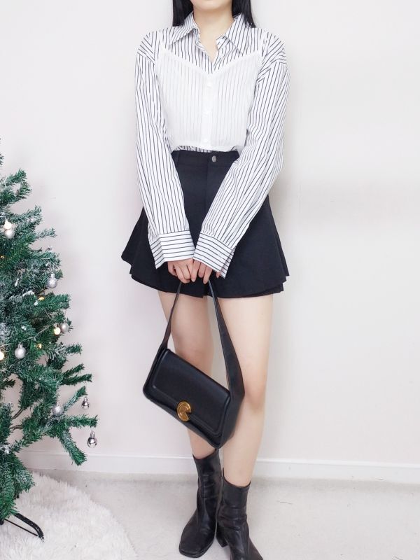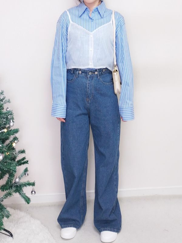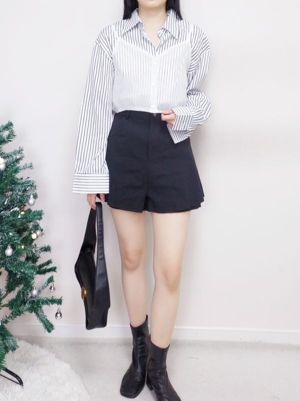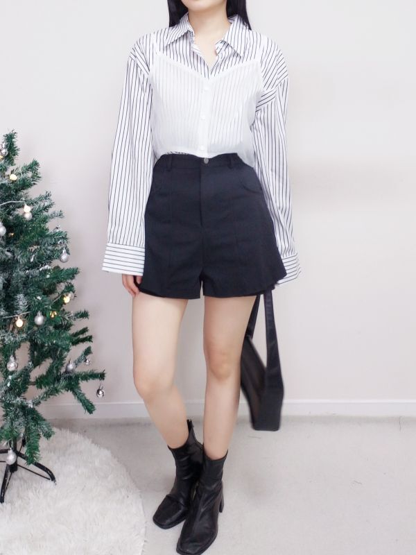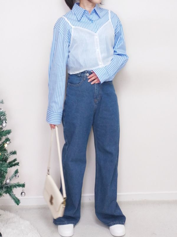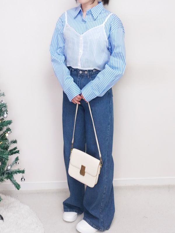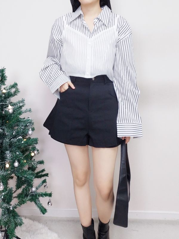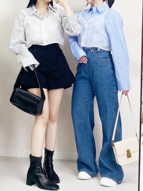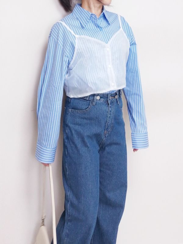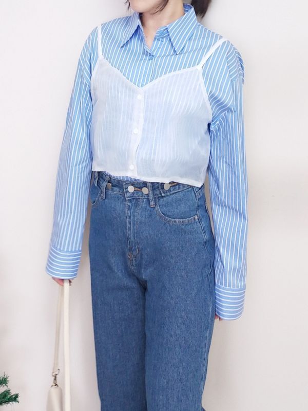 網紗背心兩件式條紋襯衫/兩色