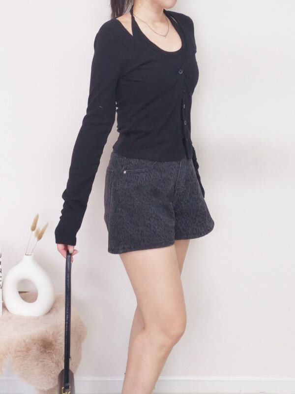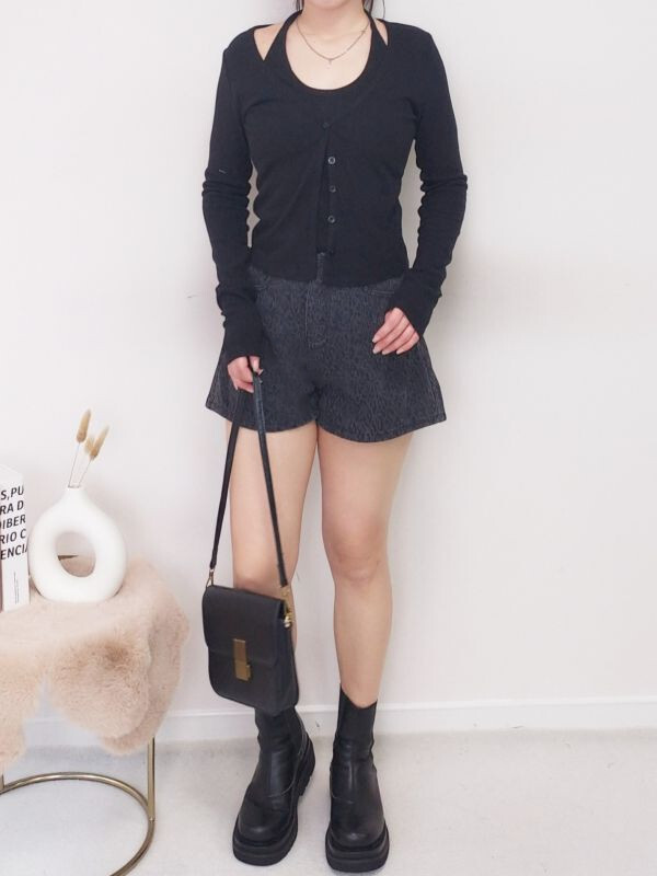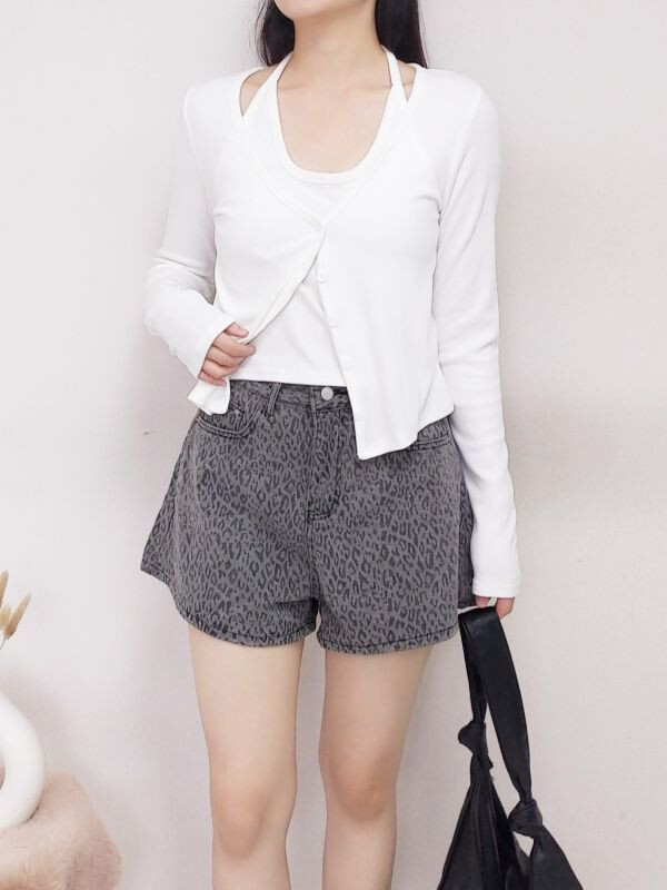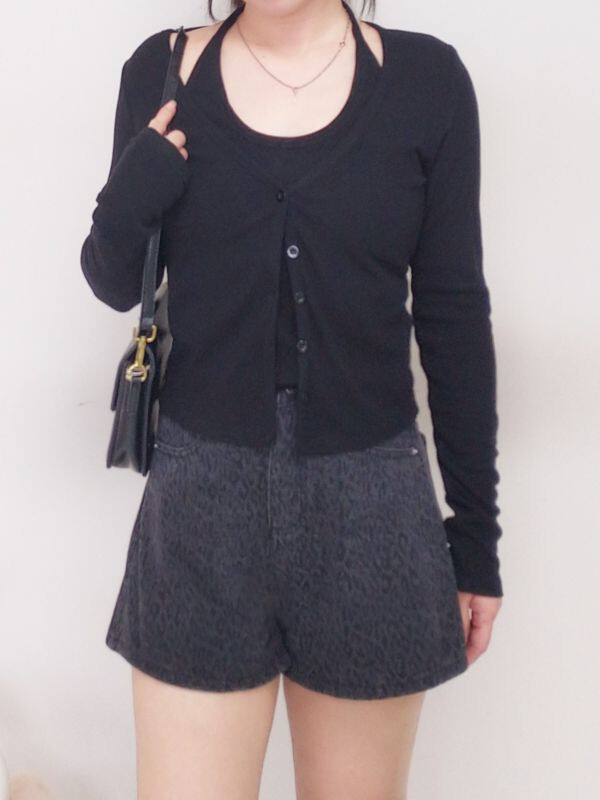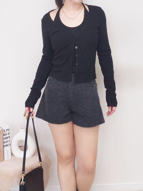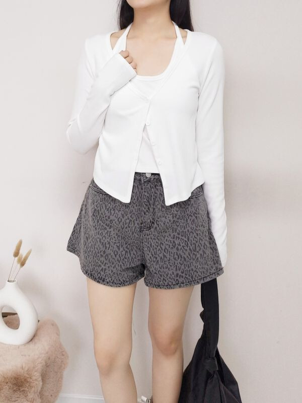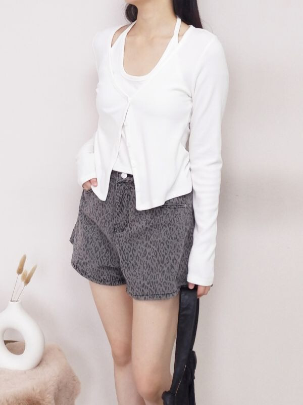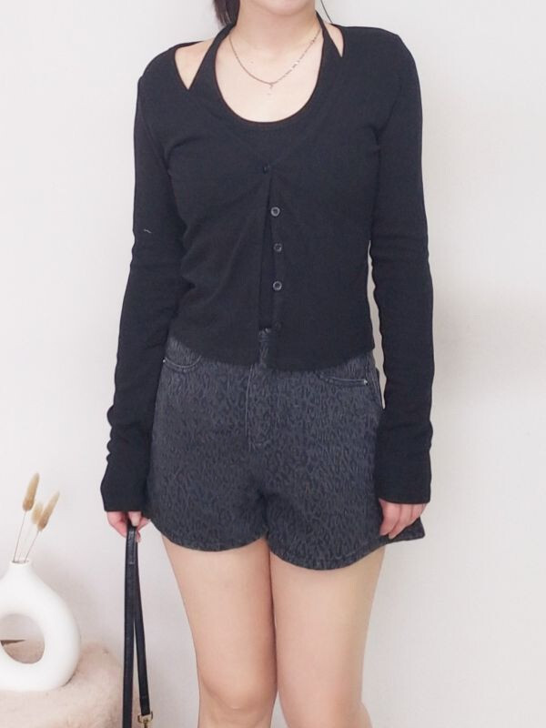 假兩件坑條掛脖排釦上衣/兩色