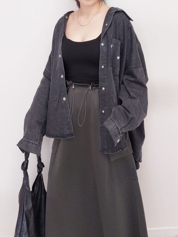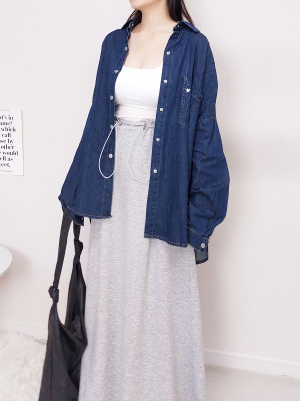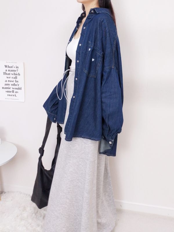 愛心刺繡口袋牛仔襯衫外套/兩色