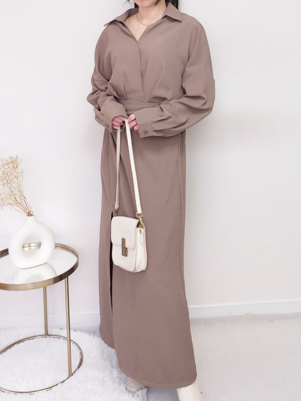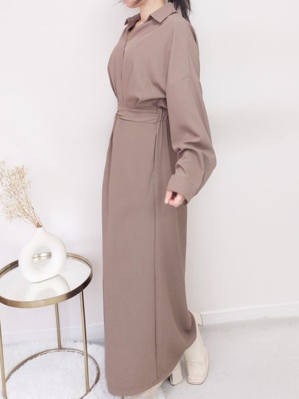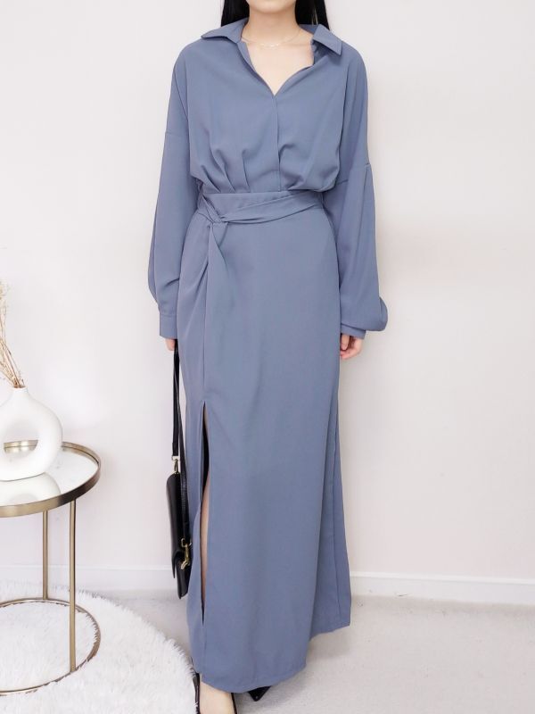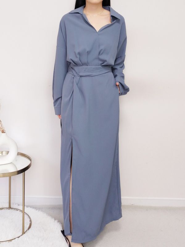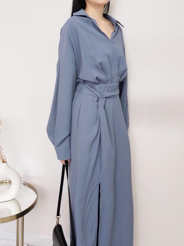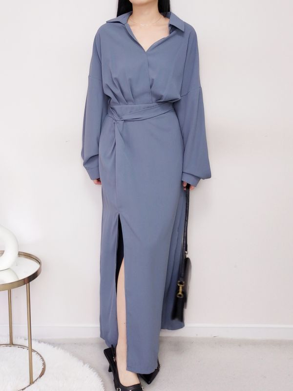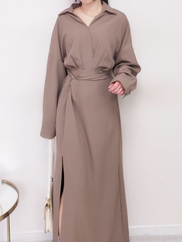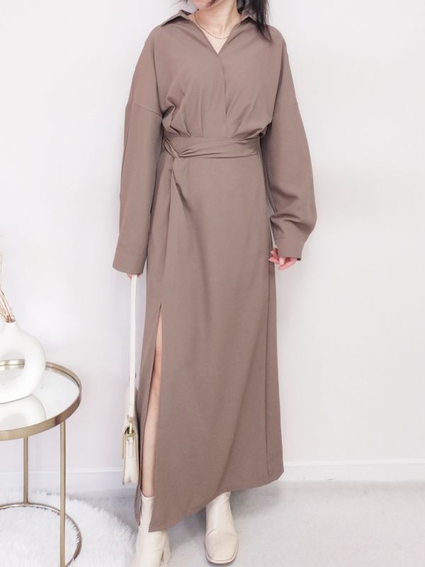 V領扭結開衩後鬆緊洋裝/兩色
