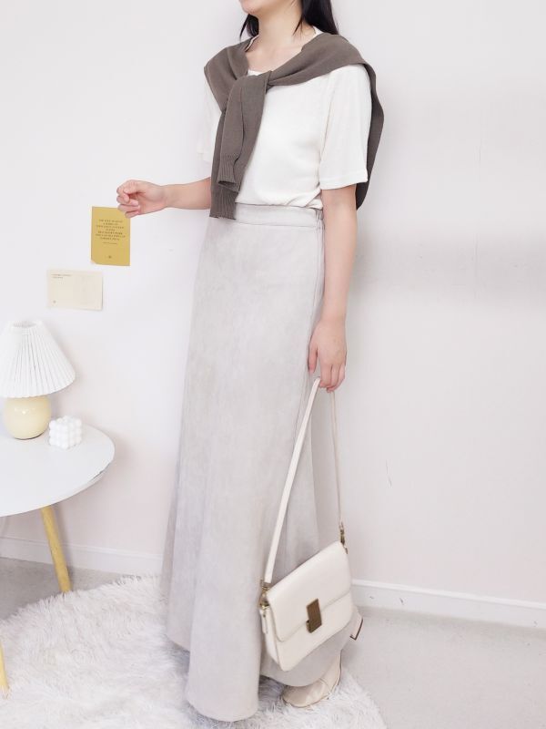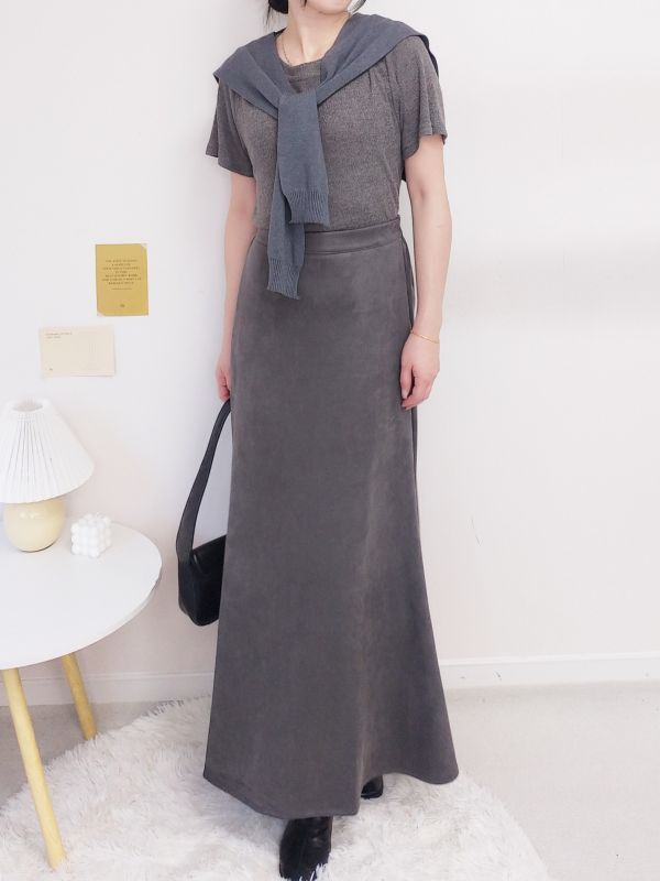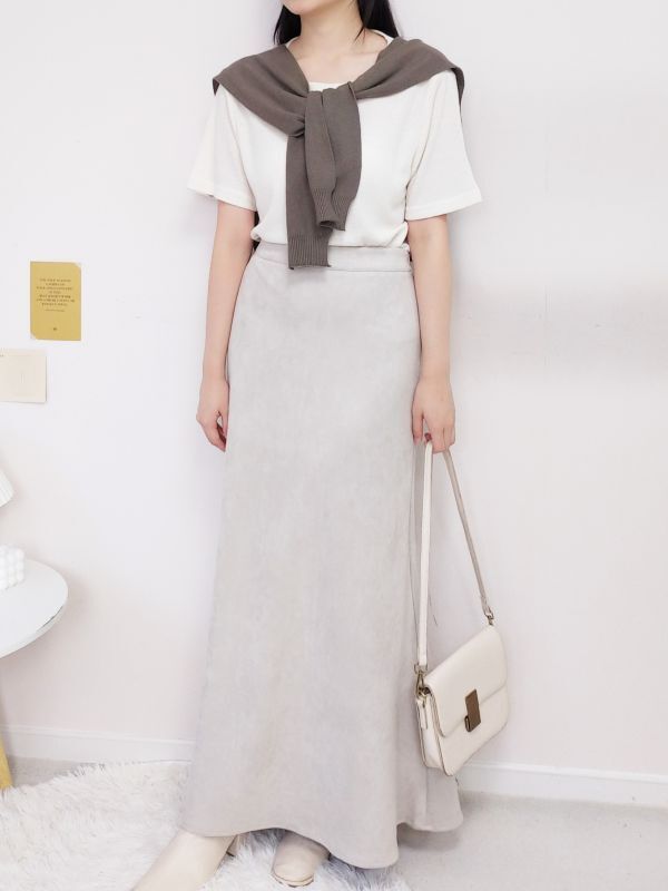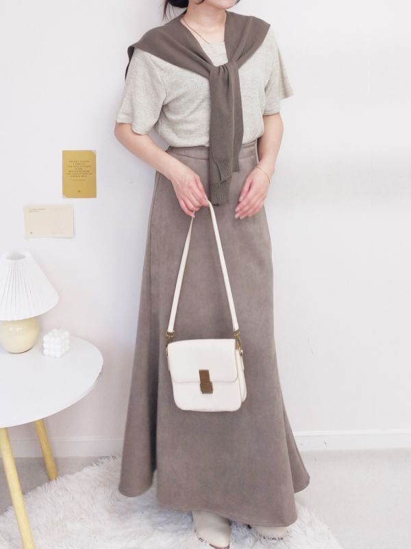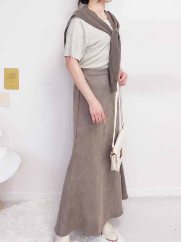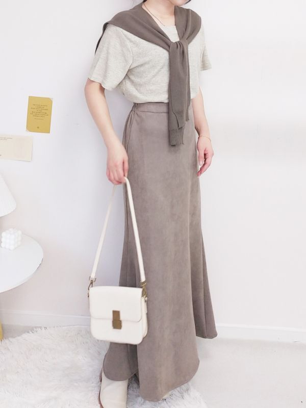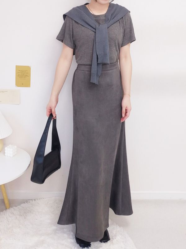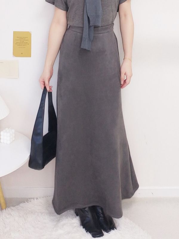 質感麂皮絨後鬆緊魚尾長裙/三色